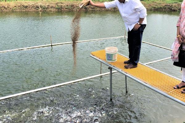 (2)从下池第2天开始投喂鲜活饵料,比如红虫、浮游动物等,再逐渐混合投喂鱼浆、鲜活饵料、浮性颗粒配合饵料。待鲈鱼被逐渐驯化后,投喂搅碎的鱼糜、浮性颗粒饲料。